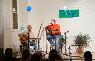 | Hey everyone, I have been playing in various groups for years as some of you already know. I have a calendar page where you will be able to see a lot of the gigs and recording projects in which I am and will be participating. Recently I have spent more time playing with my son. He's the best! Musically I've been blessed with many connections which are too many to mention - it's always a pleasure no matter where I get to play and sing with others. Below are some photos taken by Howard Cannon at the Wonderful Life Night, and a Wonderful Life it has been! I was surprised and honored by those who joined me for a night of fun and music. Thank you to all who were there. As bookings are going fast, get yours in quickly! : ^ ) I also perform live with many of the groups that I have recorded. Like Steve Gretz and Leslie Lee. These will also appear on my calendar and Humming Lake Recording Artist page. Check back to see the calendar page for updates of added gigs. Hope to see you all soon! ~ Love, Seth |
